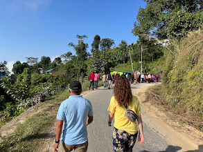 The next day at breakfast, our hosts mentioned we could go up to the local temple as there was something happening there for the Dashain festival, the longest festival in Nepal lasting between 10-15 days. We wandered up to check it out, and the next thing we knew we were wrapped up in a parade with singing, dancing, and local instruments. The parade continued throughout the hilly streets - it was a walking dance party, we just wish we knew the moves! We also learnt more about our hosts and their community. The Mum was part of a local women’s empowerment group (who wanted Jelley to record a TikTok video for them), and the Dad grew up in the village, attending the primary school before having to walk 2 hours each way to attend the nearest high school. His parents fundraised to build a local high school so their kids could have better access to education, and our host Dad subsequently taught at the school. This was an awesome, unexpected local experience and we felt really welcomed by the community.