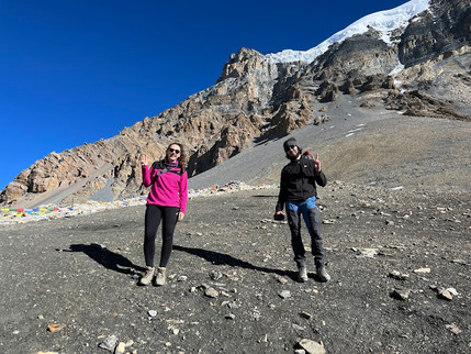 High camp was deserted, everyone staying here had also left early, and there was still no one behind us! We were feeling really good and made great pace, soon reaching groups stopped for a drinks break. We then caught up with the Sebastians, and it was great to reunite to share the Thorong La pass experience!