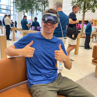 We took the early train in the morning to get to the airport to part ways again, but just for a few days this time! Luke had to exit Schengen to conclude his work visa and transfer to a tourist visa, while Jelley was still working for a couple more weeks wrapping up her role and went back to the office in Frankfurt. It was just a short trip to London, but Luke got the chance to see Greer and Andrew / Victoria for the last time in their London apartment before they headed back to New Zealand! Luke also got to try on Apple's new Vision Pro headset which was a funny highlight for him.