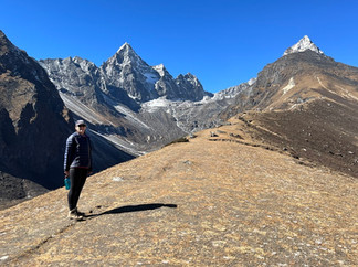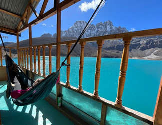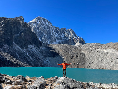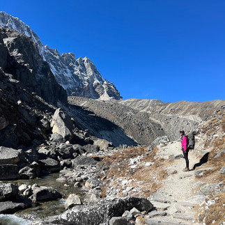 Jelley filled up her social cup chatting with other guests before returning to our sunny room to sleep for the day. Luke set out on a solo adventure up the valley to the ‘4th & 5th’ lakes. Gokyo Lakes are known as the sacred lakes, holy to both Hindus and Buddhists, with swimming forbidden except for just one time per year during the Janai Purnima festival. If Luke had continued on to the 6th & 7th lakes, he would've arrived at Cho Oyu base camp, the world’s 6th tallest mountain (8,188m / 26,864ft), straddling the edge of the Nepal and Chinese border. Luke enjoyed the solitude and only came across a handful of other walkers out there. The turquoise glacial lakes and views of Everest and Cho Oyu were a real treat.