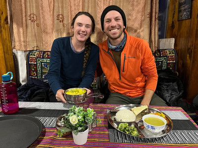 Upon arriving at the small village of Dhole, we very quickly realized we were now in the high alpine country. No WiFi, no crowds, no problem. We were the only 2 people in the tiny village and while it was very tempting to continue hiking, we followed the elevation rules and stayed put at our little "Alpine Cottage". 2 groups arrived just shortly before dinner, and it was nice to have a social atmosphere again! The other trekkers were from Canada and the UK. The ladies from Canada were retired and in their 60s and 70s, and had left their husbands at home for 2 months travelling together through Nepal! They had already successfully completed a 5 week trek in the Annapurna region around Manaslu and Tsum Valley, and they were now headed on the same circuit as us from Namche Bazaar to Gokyo Lake and then returning via Renjo La Pass. It was super inspiring to meet such an active group of ladies, although Luke was hoping Jelley didn’t get any ideas to leave him for 2 months (again).