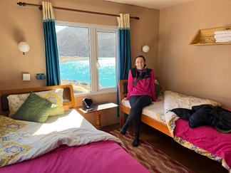 We accepted this more expensive fate both here and onwards toward Gokyo. It was certainly understandable, with the expense of getting suppliers carried or helicoptered into these remote locations. Aware of the mixed standard of teahouses at Gokyo Lakes, our next destination for 3 nights, we had already pre-booked our next accommodation at a spot with great reviews which was 5x the cost of a usual teahouse. The promise of a warm, double-glazed room with an attached bathroom at 4,790m (15,715ft) was totally worth the ‘splurge’.