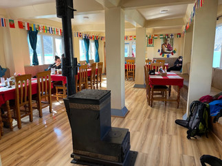 When we reached Machermo, we were quickly enticed into the ‘bakery lodge’ with the allure of delicious treats. While the room was the same price as our travels so far, the menu was double the price! Boiled eggs were even 10x the price from earlier in the hike - once going for 60 rupees for 2, here they were 600 rupees for 2 (approx USD$7)! We had reached peak prices based on the ‘boiled egg index’. Other trekkers here weren’t phased by the prices, and were straight to ordering popcorn, pasta and connecting to the wifi on their laptops! It was around $7 per phone to charge, and we were hopeful our solar power bank would prove it’s worth. We didn’t have any cell reception now so could keep our phones on flight mode and keep our charging budget to a minimum.