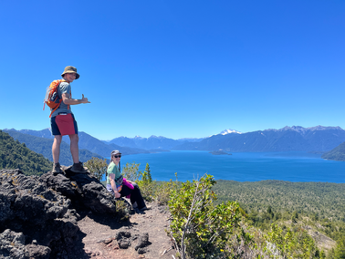It was an incredible walk through volcanic landscapes with views over the lakes, through Chile’s first national park, Alerce Andino National Park. While it was difficult in the heat and dodging bikes, it was so worth it as we reached the mirador (lookout), looking at 6 volcanic peaks surrounding us in 360 degree views. We descended down a different trail (without bikers) along a lava flow trail towards the lakefront, before a wonderful swim. It felt like we were in paradise! We had read online about a horsefly problem in the summer months in this area of Chile, and while it wasn’t as bad as reviews suggested, the ones that were there seemed to have a particular attraction to Luke, who developed a crazy dance to swat them away.