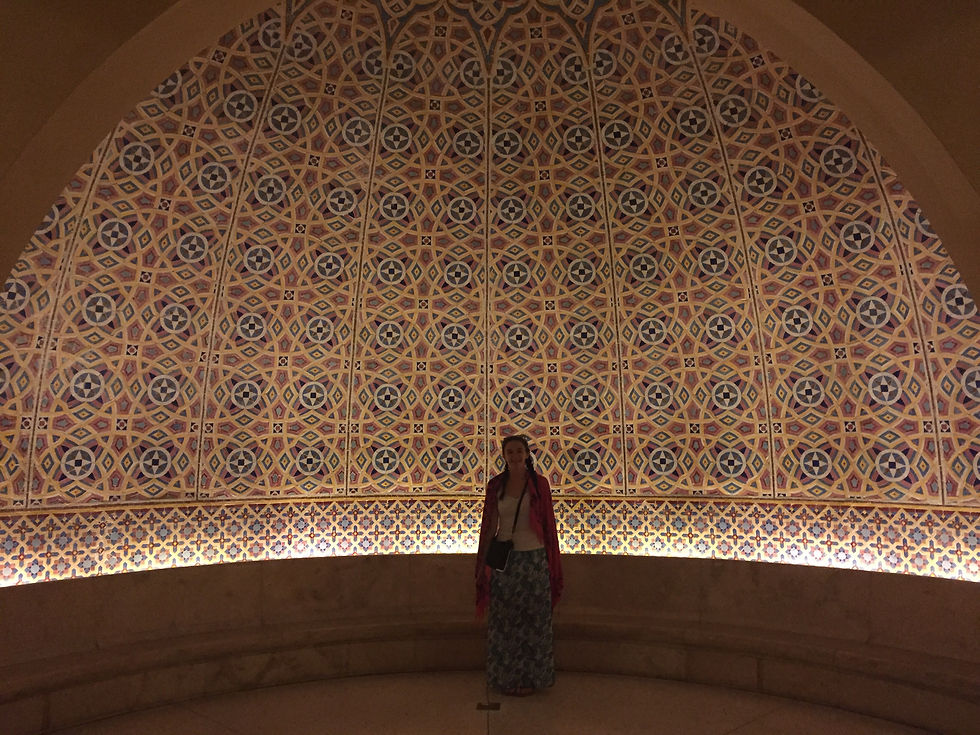 The only mosque I have visited before was in Kuala Lumpur last year, and the differences between the two were obvious even as we walked up, taking in the colourful architecture and mosaics dotting up the main tower and taking in the enormity of the complex. All of the materials in this mosque had been sourced from their own resource-rich country, with the exception of the 57 Venetian chandeliers. With a retractable roof, the Hassan ll Mosque can host up to 25,000 people praying inside and an extra 80,000 around the greater complex!