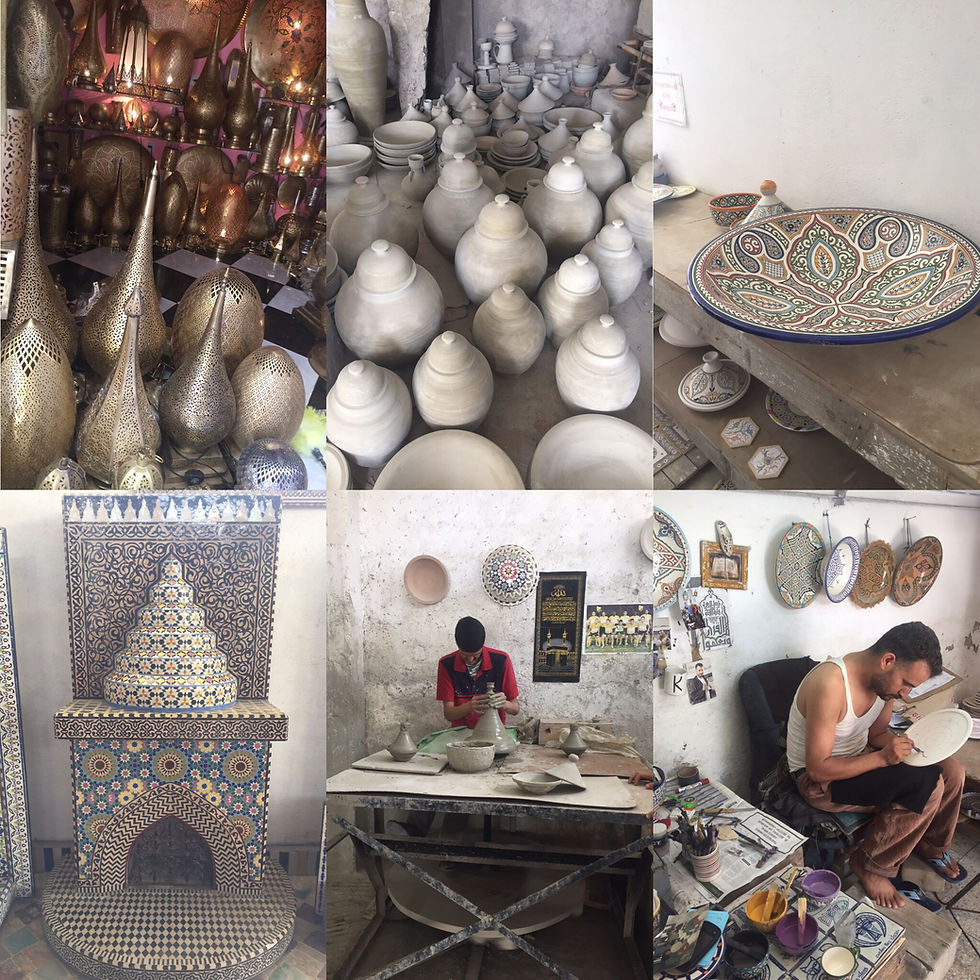 As we continued through the medina, we observed the finest craftspeople of Morocco, hard at work with their incredible metal work, creating ginormous lamps and plates, along with knife sharpening, painting and textile artists.