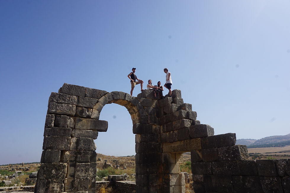 Our journey continued through the heat to Meknes, where we had a quick local tour before catching the train onto Fes. King Moulay Ismail made the city of Meknes famous when he made it the capital of Morocco for a while. The current king of Morocco is a descendant of Moulay Ismail, and this city remains important to the country today. We enjoyed the beautiful doors of the 17h century royal kasbah before exploring the ginormous old granary. Hundreds of tones of grains were stored here as a strategic reservoir of food provision in case of siege to allow for 6 months worth of food. The architecture of this building was almost characteristic to that of a church, and the 3-5m thick walls doubled as a cooling mechanism, I would imagine this building would provide an escape from the heat in the summer as it did for us on our tour. Adjoining to the granary were the old horse stables, so old and unstable we were warned not to stand directly under the arches, just in case!