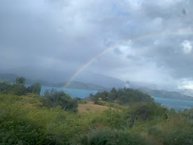 We remained hopeful the storm might pass in 24-48 hours, and even more hopeful that our accommodation would have decent WiFi to make the most productive use of our downtime. The clouds briefly lifted as we approached Lago General Carrera, a rainbow greeting us as we rounded this beautiful turqoise lake. We felt a little seasick just looking at the swell across the enormous lake, although the nauseousness could have been from the bus journey.