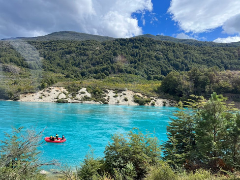 The bus ride to Cochrane was another scenic one, as we continued around Lago General Carrera, then alongside the impressive rapids of the river Rio Baker. Interestingly, Rio Baker had featured in the movie we had just watched, 180 Degrees South, where activists successfully fought against a dam project in the area. We also got a glimpse of the confluence where two bright turquoise rivers join and continue through Patagonia.